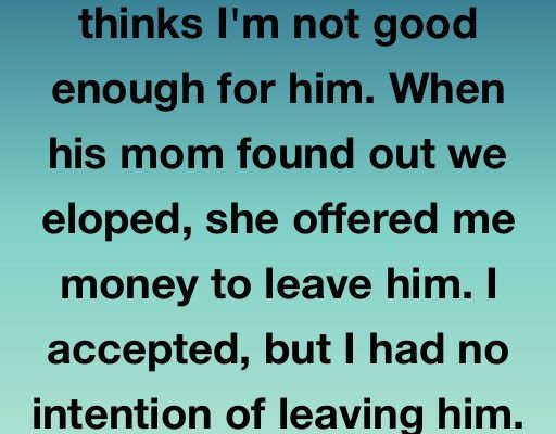 My husband’s rich family thinks I’m not good enough for him. When his mom found out we eloped, she offered me money to leave him. I accepted, but I had no intention of leaving him. Instead, I called my sister.