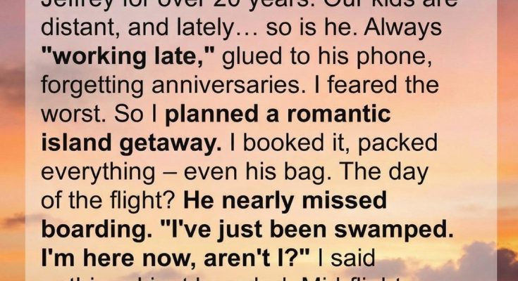 When we landed, I didn’t confront him immediately. Instead, I held his hand tighter than I had in years. Later, in the soft quiet of our hotel room, we finally talked—openly, honestly, without fear. The distance between us hadn’t been caused by neglect, but by silence meant to protect. That journey didn’t fix everything overnight, but it reopened a door we had unknowingly closed. Sometimes the truth isn’t what we fear most. Sometimes it’s a reminder that love can grow quieter, not weaker—and that listening matters just as much as asking.