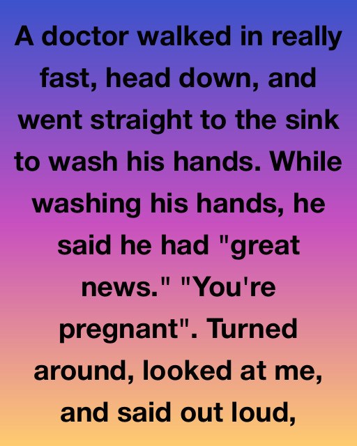 A doctor walked in really fast, head down, and went straight to the sink to wash his hands. While washing his hands, he said he had “great news.” “You’re pregnant”. Turned around, looked at me, and said out loud, “Wait, you’re not the patient I thought you were. My apologies, I need to check the chart again.”