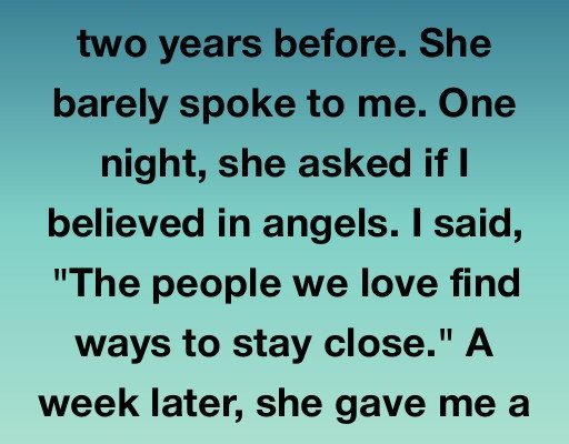 “Do you believe in angels, Alex?” she asked suddenly, her voice thin but serious.