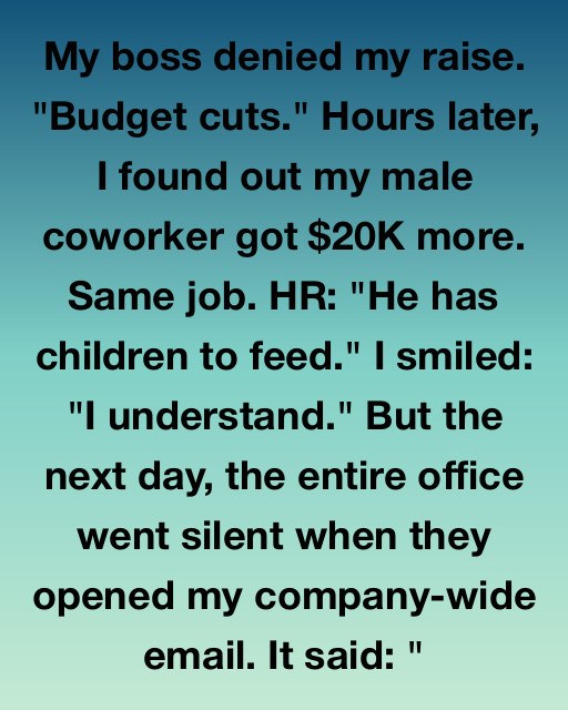 The HR manager, Ms. Davies, a woman known for her corporate-speak and unflappable demeanor, met with me in a sterile, windowless room. I laid out the facts, starting with my request, then Mr. Harrison’s denial based on “budget cuts,” and finally, Julian’s twenty-thousand-dollar raise.