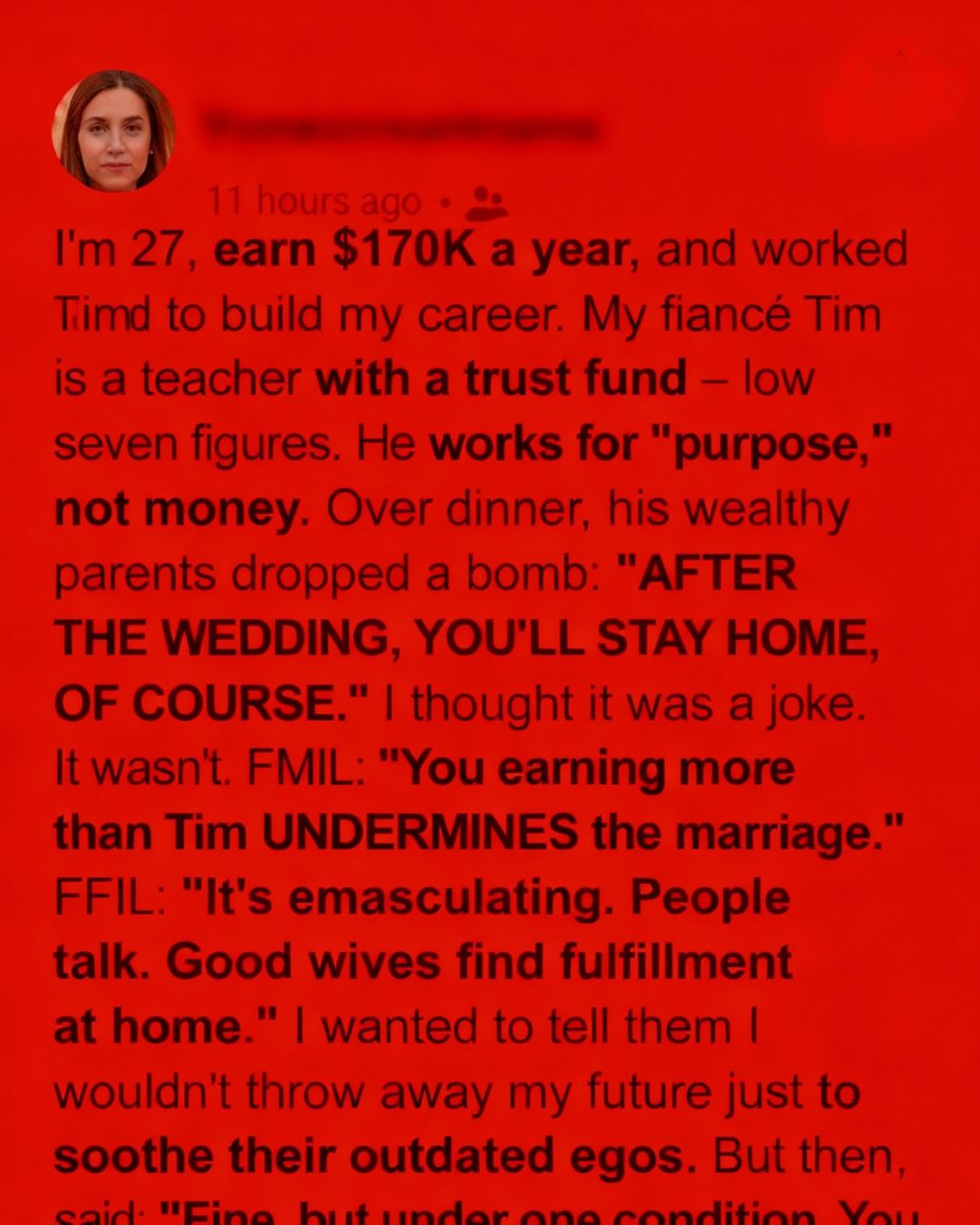 She read the words again on her phone, the glow of the screen reflecting a life she had built line by line, promotion by promotion, sleepless night by sleepless night. At twenty-seven, her career was not an accident or a gift; it was a choice she had defended repeatedly, even when it meant missing birthdays, declining comfort, or being labeled “too ambitious.” She loved her work not just for the salary, but for the proof it offered: that she could stand on her own feet. When she met her fiancé, she admired his devotion to teaching, his belief in purpose, and the calm certainty with which he lived. Their differences felt complementary—two paths walking side by side, not competing, not overshadowing one another.