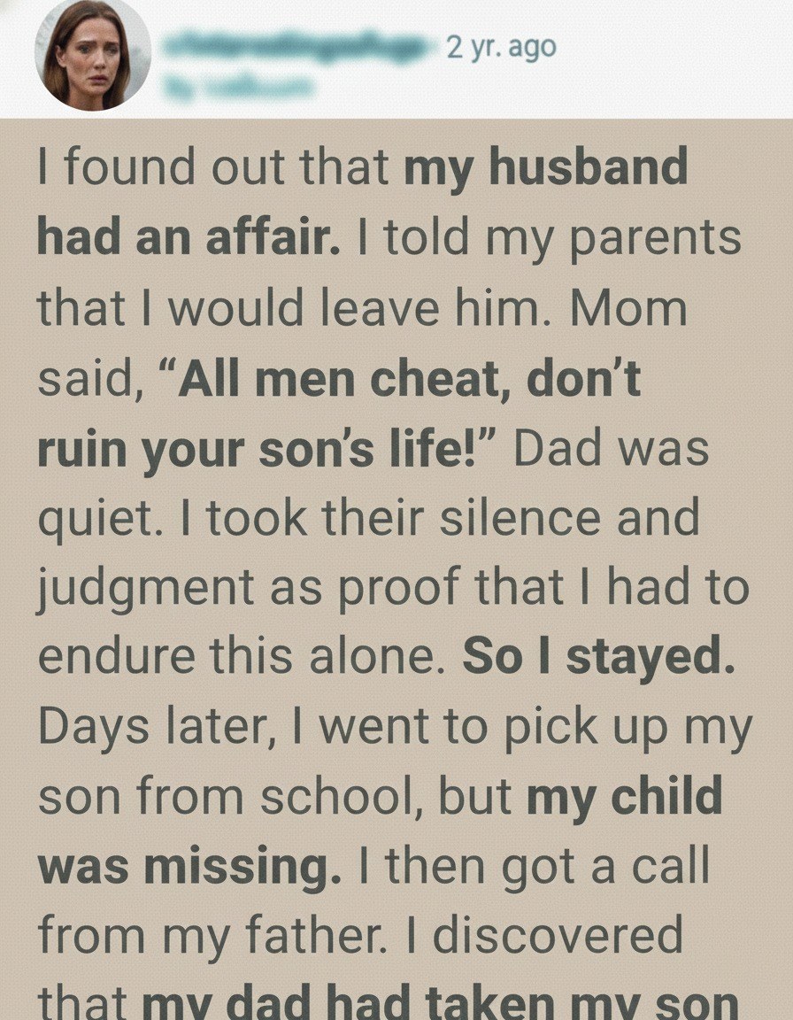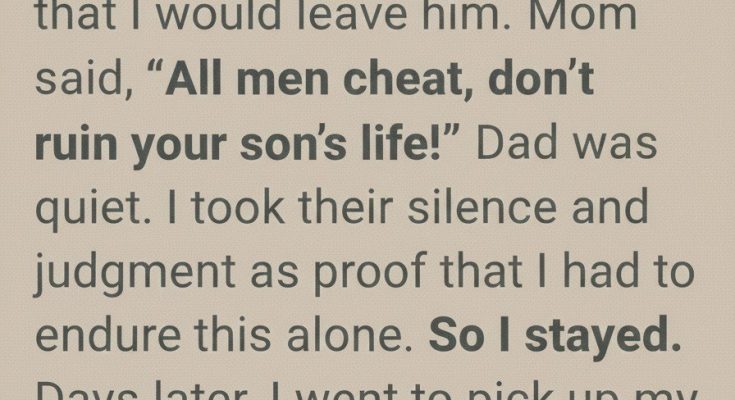 Instead, my mother sighed, put down her teacup, and said the words that cut deeper than my husband’s betrayal: “All men cheat. Don’t ruin your son’s life over something small.”