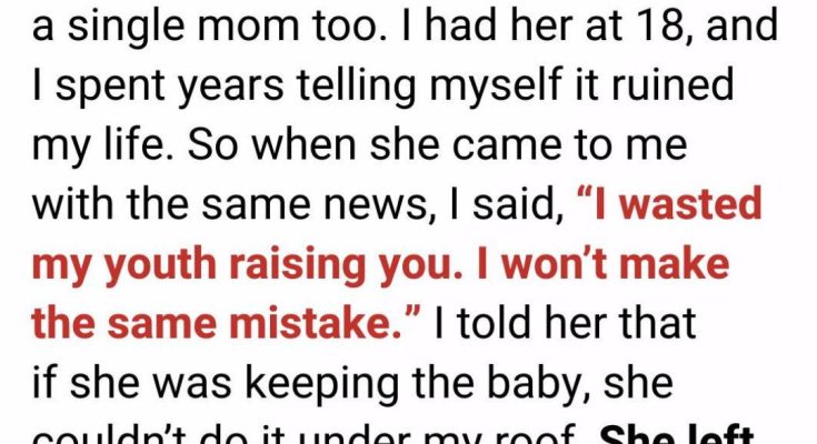 I had raised her alone, becoming a mother myself before I was even eighteen. For years, I carried a quiet resentment I never dared to say out loud — that my youth had slipped away too soon, that my dreams had been postponed, that motherhood had shaped my life before I was ready.