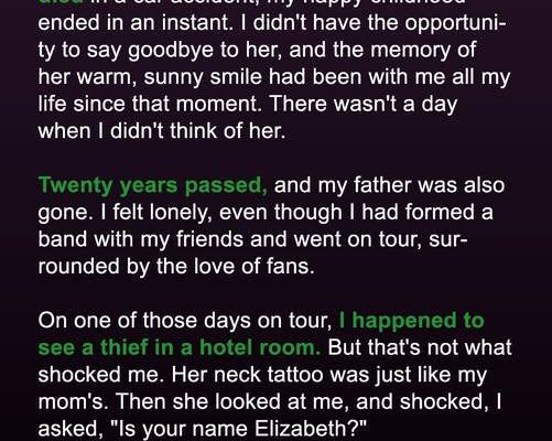 “Mom?! Is that really you?” Aaron froze, his heart pounding. His eyes locked onto the tattoo on the woman’s neck. The same one he remembered from a childhood photo. The same one he cried over when he was told his mother died in a car crash years ago.