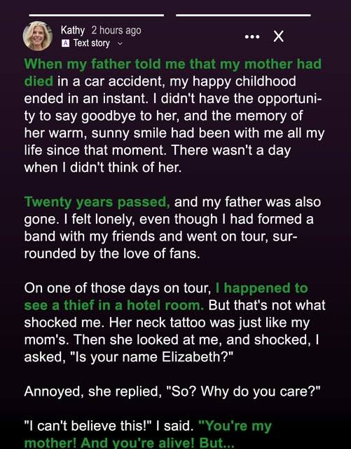 The young man stared at her neck tattoo. “Oh my god… You’re my mother! You’re alive! But how—what’s going on?!”