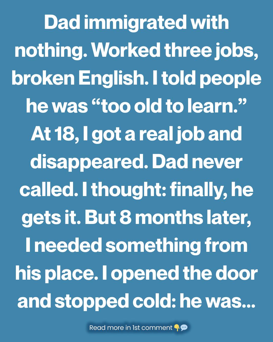 No savings. No connections. Not even enough English to ask for directions without feeling embarrassed. He worked three jobs—whatever he could find. Night shifts, weekend labor, anything that paid cash. He came home exhausted, smelling like sweat and grease, his hands cracked and swollen.