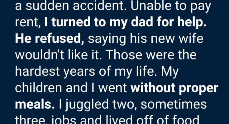 He didn’t even invite me inside. He stood in the doorway, arms crossed, and said his new wife wouldn’t be comfortable. He said he didn’t want to “disrupt the peace” in his home. I remember nodding, pretending I understood, then driving away with my children in the back seat while tears blurred the road. I couldn’t understand how a parent could choose comfort over their own child’s survival—or ignore their grandchildren as if they were strangers.