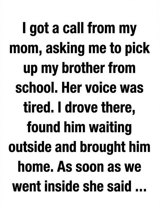 The call came late in the afternoon, just as the sun was beginning to soften the edges of the day. My mom’s voice sounded worn, thinner than usual, like she had been carrying something heavy for far too long. She asked if I could pick up my younger brother from school. There was no explanation, no small talk—just a quiet request that lingered in the air after she hung up. As I grabbed my keys, I told myself not to overthink it. Still, the silence in her voice followed me all the way to the car, settling into the space beside me as I drove.