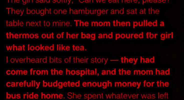 The restaurant was loud in the way fast-food places often are—beeping timers, rustling wrappers, a low hum of conversations overlapping one another. I had stopped in for something quick, expecting nothing more than caffeine and a few quiet minutes to myself. At the table beside me sat a woman and a young girl, close enough that I could sense their presence without trying to listen. The child’s voice was gentle, hopeful, asking small questions that carried big meaning. There was an innocence in the way she looked around, as if this ordinary place felt special to her, like a rare outing instead of just another stop along the day.