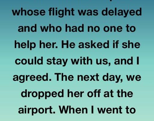 “I know it’s a huge ask, especially since we’ve never met her,” he said, holding my gaze. “But she just looked so vulnerable. She needs a warm, safe place for one night, just until the morning flights start again. She’s flying to see her granddaughter for the holidays.” I hesitated for a moment, looking at the genuinely kind plea in his eyes.