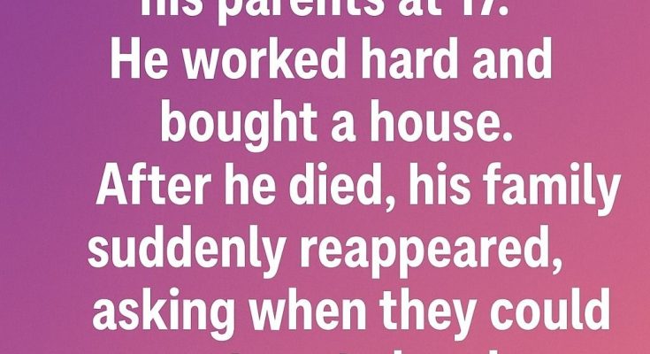 The question hit me like a wave. My heart was still breaking, and the thought of losing the only piece of him I had left felt unbearable. But I steadied myself, looked them in the eye, and said softly, “You can have the house — under one condition. Promise you’ll fill it with the same love and kindness he poured into it.” For a long moment, no one spoke. I thought they would turn away in anger.