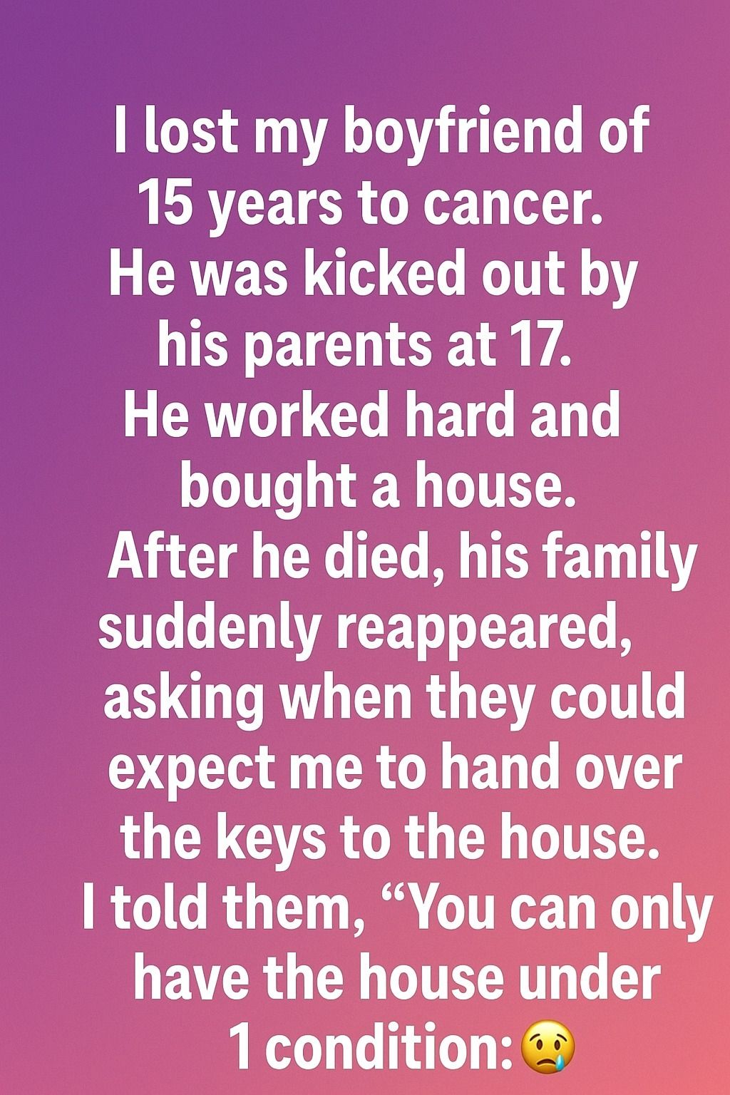 When I lost my boyfriend of fifteen years, it felt like the world had stopped turning. He was my best friend, my partner, my home. Life hadn’t been kind to him — his parents asked him to leave when he was just seventeen. But instead of letting it destroy him, he built something beautiful from the pain. He worked tirelessly, saved every penny, and one day, he bought a small house filled with warmth, dreams, and hope.