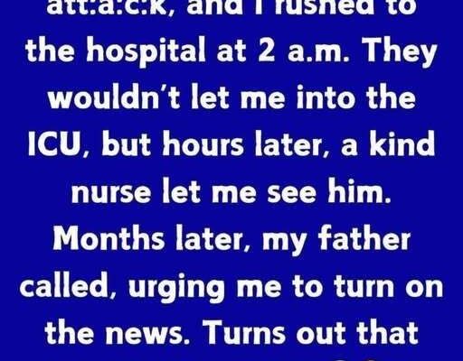 When my father had a sudden health emergency, I rushed to the hospital at 2 a.m., my heart pounding with fear. The hallways were dim and silent, the kind of quiet that feels heavy. When I reached the ICU, a nurse gently stopped me. “You can’t go in right now. Come back in the morning.” But I couldn’t leave. I sat outside those closed doors for hours, staring at the clock, praying for good news, feeling more helpless than I ever had.