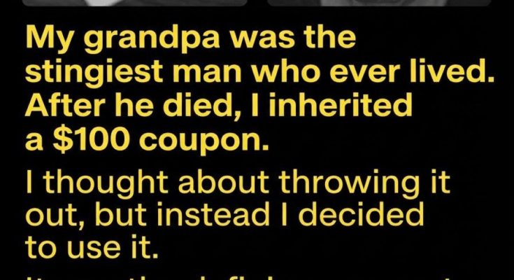 My grandfather had a reputation that followed him everywhere he went. He reused envelopes, saved rubber bands, and turned off lights like electricity was a personal expense. Growing up, we joked that he treated money less like a tool and more like something to be guarded at all costs. So when he passed away and I learned that my inheritance consisted of a single $100 coupon, I wasn’t surprised—just disappointed. The coupon was old, creased, and tucked inside a book filled with handwritten notes about grocery prices from decades earlier. I considered throwing it out, assuming it was expired or unusable, another example of his strange attachment to saving things long past their usefulness.