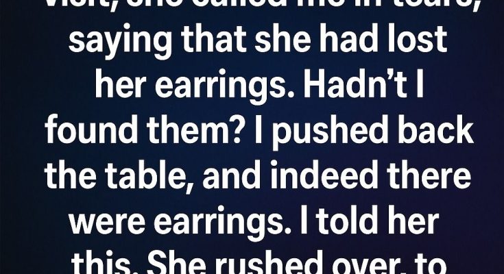 I searched everywhere — under chairs, behind mirrors, even inside drawers. Finally, when I pushed back the small table near my styling station, something sparkled beneath it. There they were — two dazzling earrings, catching the light like tiny stars. Relieved, I called her immediately. Within minutes, she rushed in, her face a mix of hope and fear.