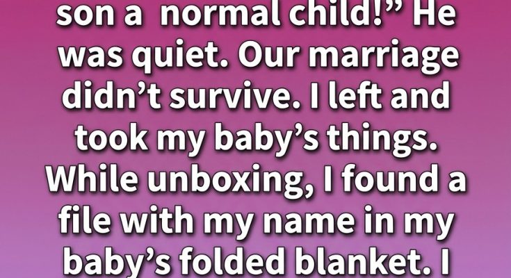 Weeks later, alone in a small apartment, I finally found the courage to open the boxes I had packed in a hurry. Each item carried a memory: tiny clothes never outgrown, toys barely used, a soft blanket that still smelled faintly familiar. As I unfolded that blanket, something unexpected slipped out—a thin file folder with my name written neatly on the front. My hands trembled as I picked it up. I had no memory of ever seeing it before, and yet it had been carefully hidden, as if someone wanted it protected. In that moment, curiosity mixed with fear, and I hesitated before opening it.