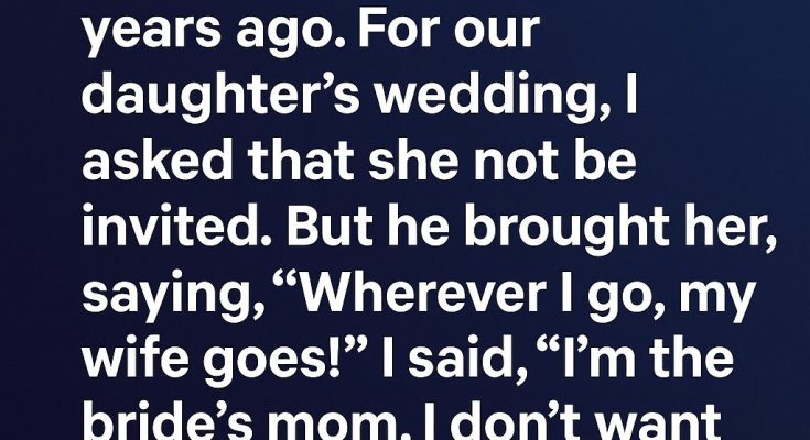 I get irritated seeing my ex-husband’s wife who ruined my marriage 12 years ago. For our daughter’s wedding, I asked that she not be invited. But he brought her, saying, “Wherever I go, my wife goes!” I said, “I’m the bride’s mom.
