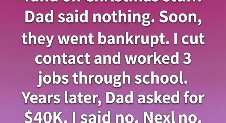 College was relentless. I worked three jobs, slept in short stretches, and learned to measure time in shifts instead of weekends. While others focused on social lives and comfort, I focused on survival and progress. It wasn’t glamorous, but it was honest. Every bill I paid, every class I passed, felt earned. Slowly, my life steadied. I built a career, a modest home, and a sense of confidence rooted in knowing I owed nothing to anyone. I rarely thought about my father or his choices—until years later, when he called and asked for forty thousand dollars. I listened, said no calmly, and ended the call. When he asked again, my answer didn’t change.