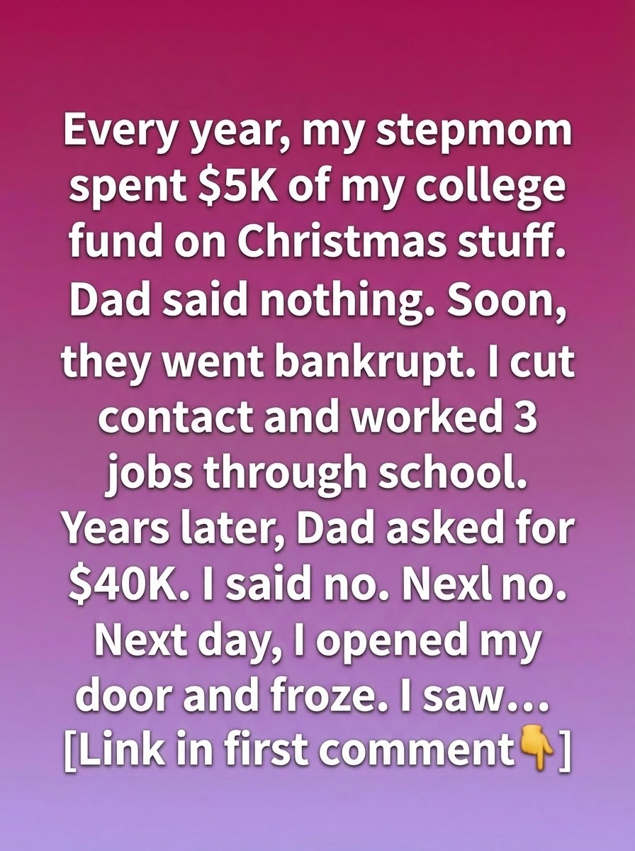 For as long as I could remember, money meant uncertainty. Every year, while I carefully planned for college and dreamed about a future built on independence, my stepmother treated my education fund like a holiday expense account. Thousands disappeared into decorations, gifts, and celebrations that looked impressive from the outside but left nothing lasting behind. My father knew. He always knew. Yet he stayed silent, choosing peace in his marriage over responsibility to his child. When everything finally collapsed and bankruptcy followed, I wasn’t surprised—just tired. I walked away, not out of anger, but out of self-preservation, and learned early that if I wanted stability, I would have to create it myself.