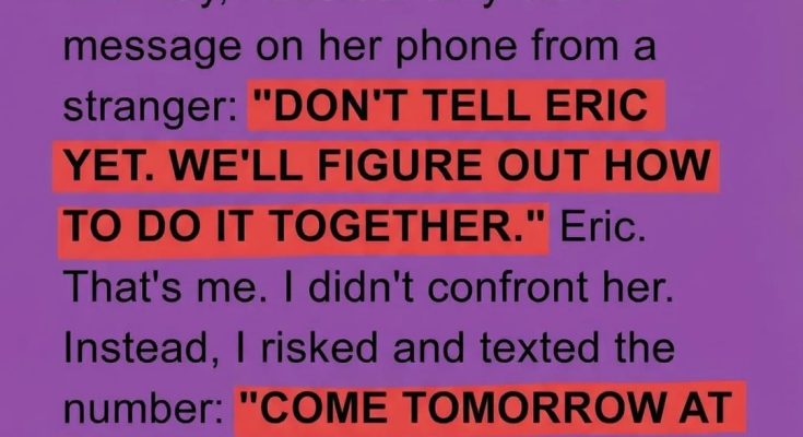I used to believe my marriage was built on certainty—the quiet kind that doesn’t need constant reassurance. Claire and I had routines, shared jokes, and the comfort of knowing each other’s habits by heart. That’s why the message I accidentally saw on her phone felt so jarring. It wasn’t dramatic or explicit, just a line filled with secrecy: a request to keep something from me, to “figure it out together.” What unsettled me most wasn’t fear or anger, but the realization that a part of my life was being rewritten without my knowledge. I didn’t confront her. Instead, I sat with the discomfort, wondering how long honesty had been quietly replaced by silence.