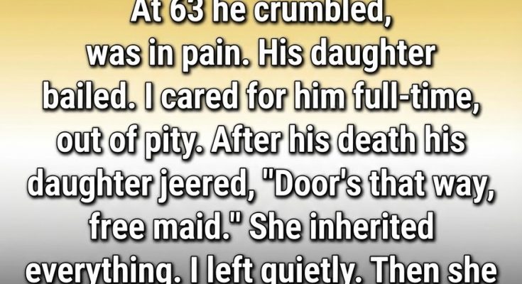 The funeral came and went quickly. His daughter arrived just long enough to sign papers and claim what was legally hers. She barely looked at me. As she left the house, she muttered something cruel, dismissing me as if the years I gave meant nothing at all. I didn’t argue. I packed my few belongings, locked the door behind me, and walked away without asking for anything. I believed that was the end of it—another chapter where kindness went unnoticed.