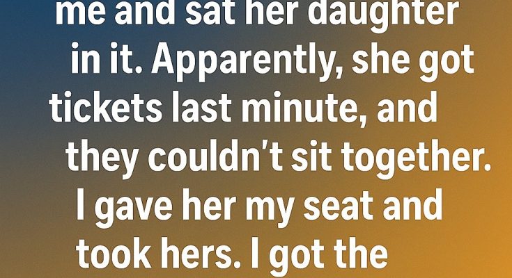 Apparently, she got tickets last minute, and they couldn’t sit together. I gave her my seat and took hers. I got the middle seat in the last row. An hour later, she stormed back and demanded to know why her daughter looked nervous and uncomfortable. I calmly explained that she was doing fine but seemed a little anxious flying alone. The flight attendants had checked on her twice, offering her snacks and reassurance. I told her there was nothing to worry about and that her daughter was safe and being cared for.