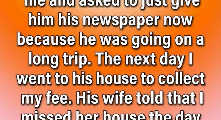 The following day, I went door to door as usual to collect my delivery fees. When I reached his house, his wife answered. She looked confused when I mentioned the payment and calmly told me that their paper hadn’t been delivered the day before. I was surprised and quickly explained what had happened—that her husband had stopped me and taken it directly since he was traveling. As soon as I said it, her expression changed. The confusion faded into something heavier, and her eyes filled with tears. The silence that followed felt longer than it probably was, and I instantly sensed that I had stepped into something far more personal than a missed newspaper.