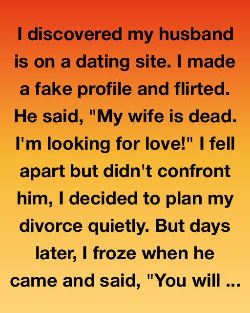 When I discovered my husband had joined a dating site, my heart sank. Out of confusion and hurt, I created a fake profile to see what he would say. When he messaged me claiming, “My wife passed away. I’m ready to move on,” the world seemed to tilt beneath me. It wasn’t just the betrayal — it was how easily he erased me with a lie. I didn’t confront him then; instead, I quietly began planning a calm, respectful separation.