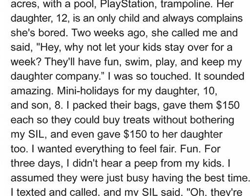 When my sister-in-law invited my children to spend part of their summer at her sprawling estate, I believed—without hesitation—that she was offering them something special. The kind of experience I could never give them myself. A place with space to roam, a pool big enough to feel like a resort, and every indulgence money could buy.