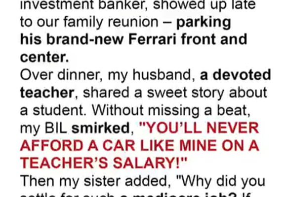 At a recent family reunion, my brother-in-law, Tom, a successful yet arrogant lawyer, decided to belittle my husband, David, a humble teacher. Tom’s wealth, flaunted through his flashy Ferrari, often made him the center of attention, and this year was no different.