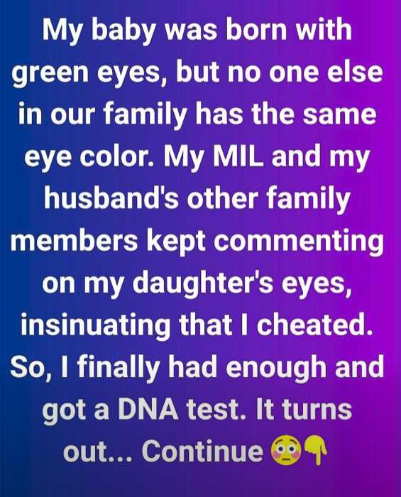 When my newborn daughter’s green eyes sparked whispers of infidelity, I agreed to a DNA test—not because my husband doubted me, but because his family wouldn’t stop suggesting I’d cheated.