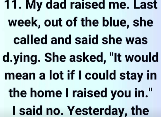 I told her the truth: she hadn’t raised me. She’d walked away. She cried. I hung up.