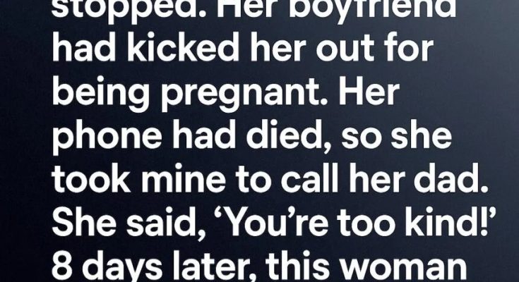 “I won’t forget this.” Then she climbed into the car and was gone. Eight days later, while I was cooking dinner, my phone buzzed with a number I didn’t recognize. The message was simple: