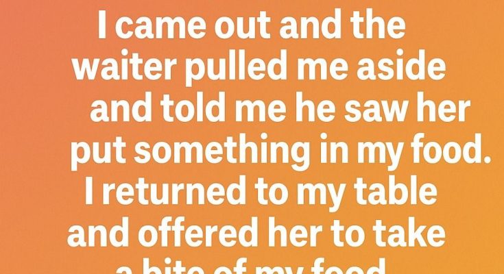 He told me he had noticed her adding something to my plate earlier and wanted to make sure I was okay. He didn’t hint at anything dangerous—just said it might have been harmless, but worth knowing. His calm, respectful tone kept me from panicking and gave me space to think.