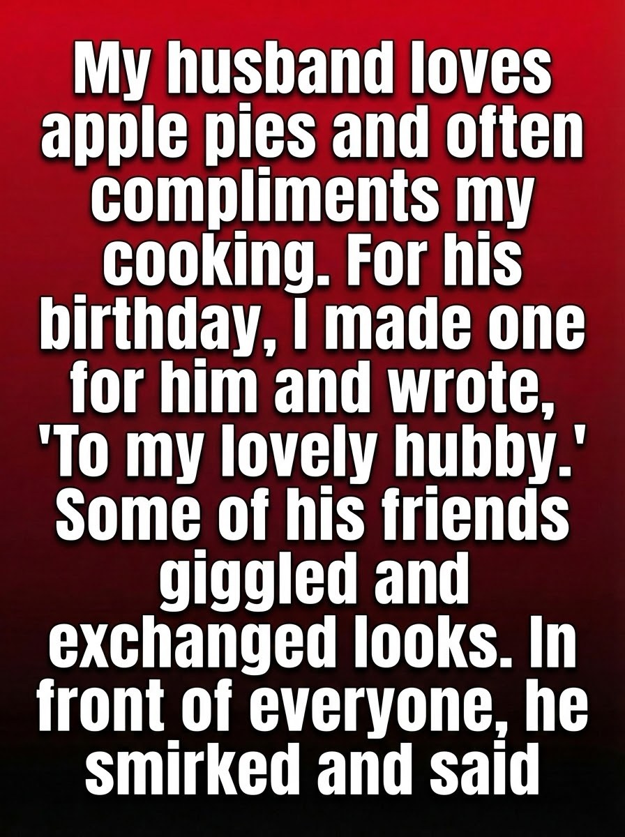 So when his birthday approached, Lena decided to make the day extra special. She spent hours perfecting the pie, brushing the crust until it shone golden, and writing a small message on top: “To my lovely hubby.” It was simple, heartfelt, and meant only for him. That evening, their home was full of friends and laughter.