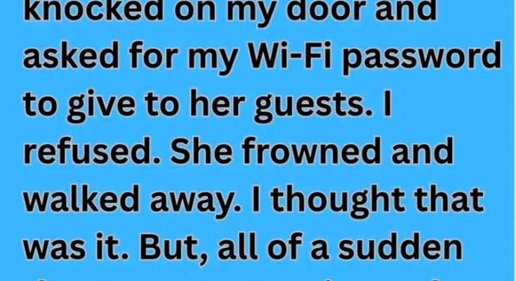 “It’s okay,” I replied. “Actually,” she continued, brushing a loose strand of hair from her face, “I was wondering if you’d mind sharing your Wi-Fi password.