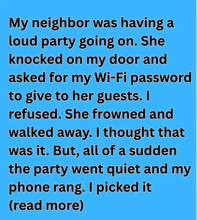 And it reminded me of something I think we all forget too easily: that honesty, even when it’s uncomfortable, is one of the most powerful tools we have. The night of the party became one of those stories I thought about more often than I expected. At first, it was just a story about noise and Wi-Fi — about an ask and a refusal.