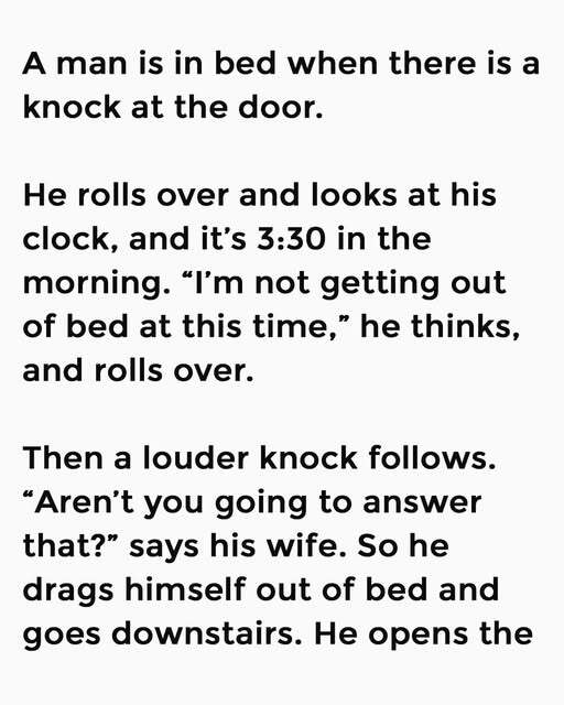 A man is in bed when there is a knock at the door. He rolls over and looks at his clock, and it’s 3:30 in the morning. “I’m not getting out of bed at this time,” he thinks, and rolls over.Then a louder knock follows. “Aren’t you going to answer that?” says his wife. So he drags himself out of bed and goes downstairs.He opens the door and there is a man standing on the porch. It didn’t take the homeowner long to realise the man was intoxicated. “Hi there,” slurs the stranger.“Can you give me a push??”“No, get lost! It’s half past three. I was in bed,” says the man and he slams the door.The singer attends the 57th Annual CMA Awards at Bridgestone Arena on November 8, 2023, in Nashville, Tennessee | Source: Getty ImagesHe goes back up and tells his wife what happened and she says, “That wasn’t very nice of you. Remember that night we broke down in the pouring rain on the way to pick the kids up from the babysitter and you had to knock on that man’s house to get us started again? What would have happened if he’d told us to get lost?”“But the guy wasn’t even in his senses,”says the husband.“It doesn’t matter,” says the wife. “He needs our help and it would be a good thing to help him.”The songstress and Ray Stevens attend the presentation of The Country Music Hall Of Fame Inductees Announcement on March 29, 2016, in Nashville, Tennessee | Source: Getty Images