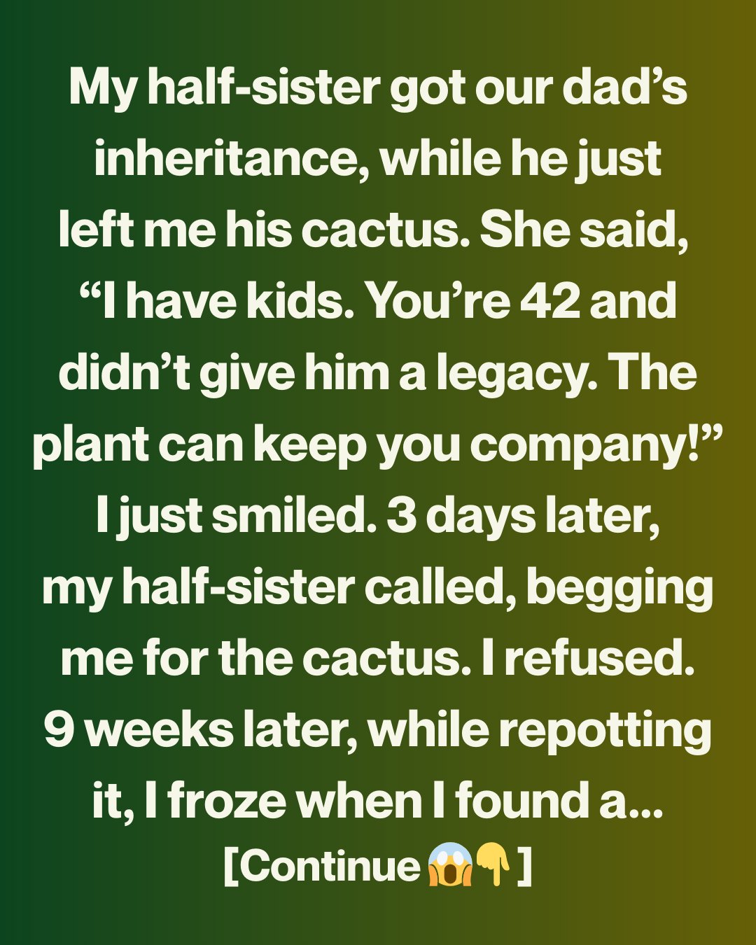 I didn’t cry in front of her either. I just nodded, took the cactus, and went home. That night, I cried quietly on my kitchen floor, the cactus sitting on the table like a silent witness.