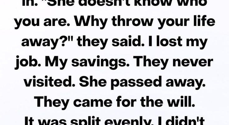 I lost my job because I couldn’t keep normal hours. My savings bled away on medications, supplies, and repairs to make the house safe. Nights blurred into mornings.Some days she mistook me for a neighbor, or her sister, or a nurse who hadn’t shown up yet. Other days she smiled and said my name like it was a small miracle. My siblings never visited.