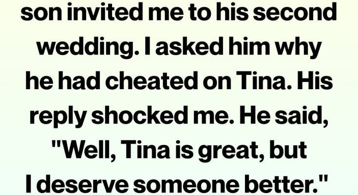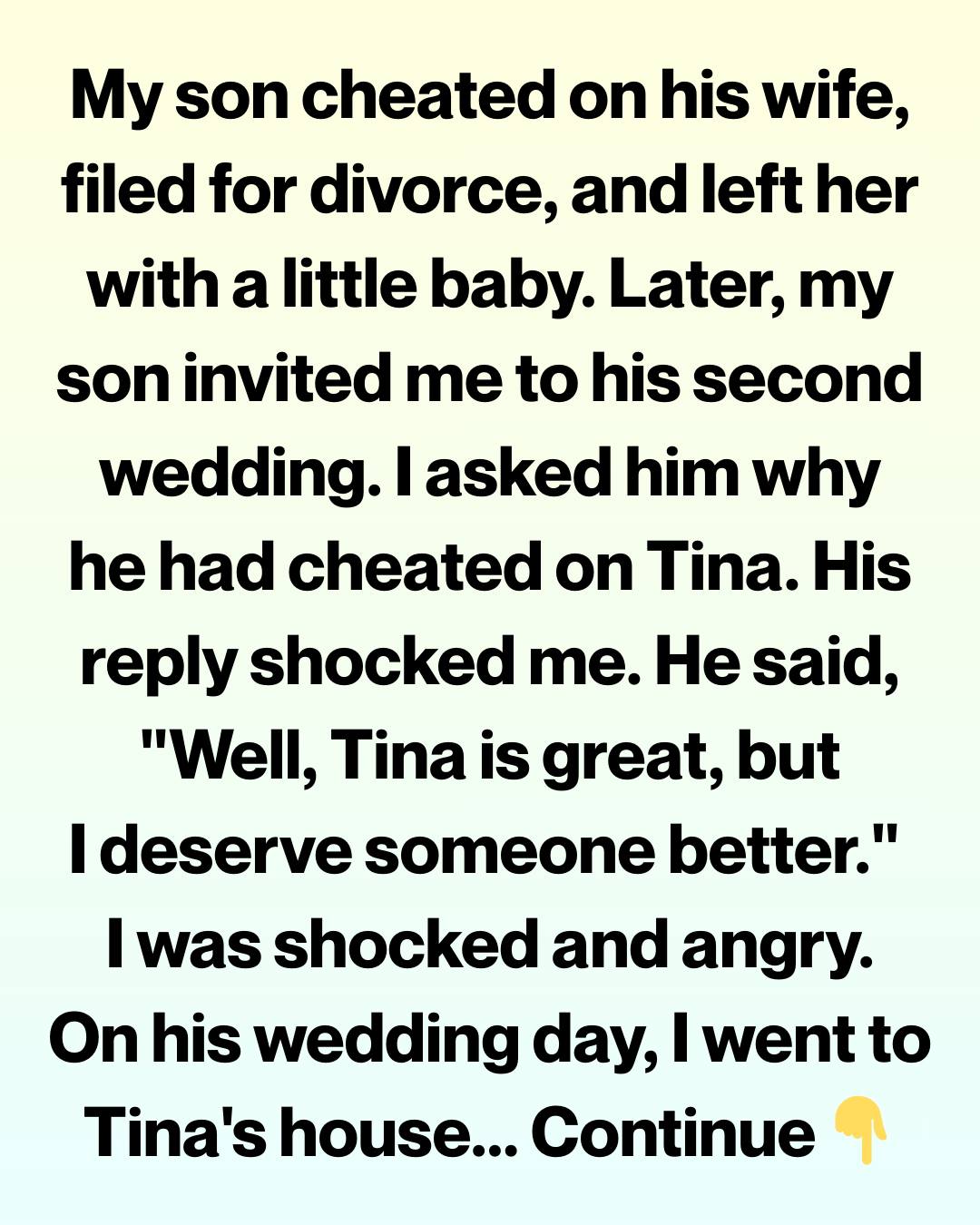 I couldn’t understand why. She loved him deeply, I suppose. Or maybe she hoped he would change for the sake of their newborn.Then, months later, the phone rang. It was my son—calm, casual, even cheerful. He told me he was filing for divorce.He had found someone new, someone he claimed was “a better fit.” Tina was left alone with a one-year-old, scraping by in a tiny rented room, working every spare moment just to keep going. I wasn’t prepared for what came next. My son called again—this time to invite us to his wedding.I asked him why he had cheated on Tina in the first place. He actually laughed. “Well, Tina is great,” he said lightly, “but I deserve someone better.”