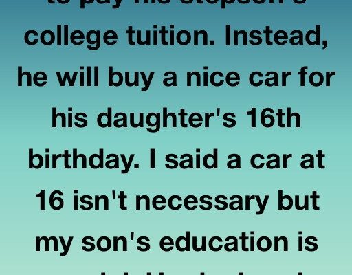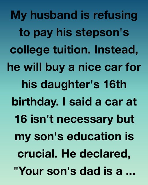 My husband is refusing to pay his stepson’s college tuition. Instead, he will buy a nice car for his daughter’s 16th birthday. I said a car at 16 isn’t necessary but my son’s education is crucial.