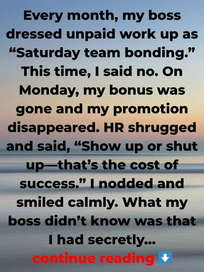 I finally stopped playing the game, and the results were life-changing. For the last year, my boss has been disguising mandatory unpaid work as “Saturday bonding.” It was always the same: “quick” client calls or “casual” deadlines that stole my entire weekend.