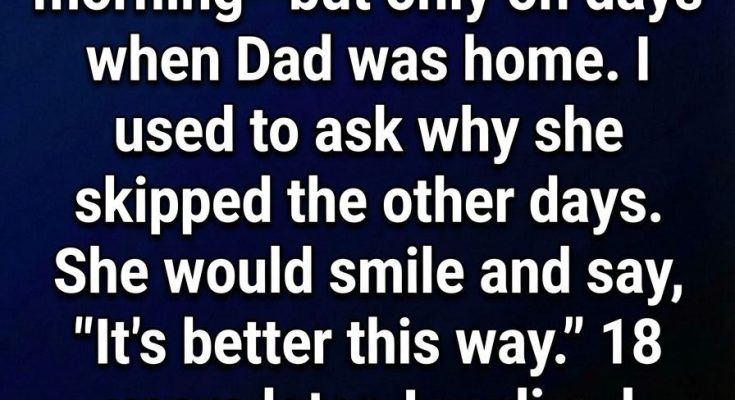 When I was 10, my mom would braid my hair every morning—but only on days when Dad was home. I used to ask why she skipped the other days. She would smile and say, “It’s better this way.” Back then, I thought it was just one of those mysterious grown-up answers, something parents said when they didn’t want to explain things to children. I didn’t question it much. I simply enjoyed the gentle tug of her fingers through my hair, the quiet moments we shared before school, and the feeling that everything in our small world was perfectly normal.