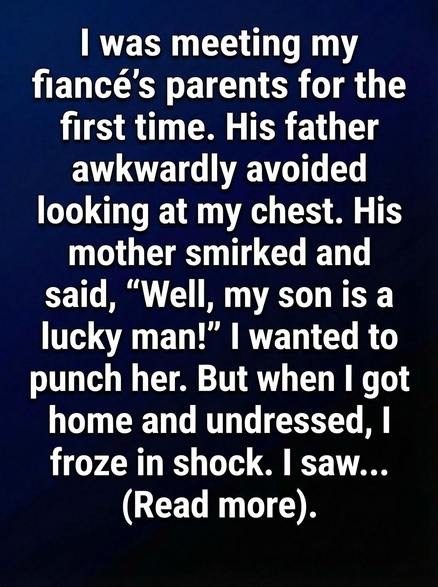 I was meeting my fiancé’s parents for the first time. His father awkwardly avoided looking at my chest. His mother smirked and said, “Well, my son is a lucky man!” I wanted to punch her. But when I got home and undressed, I froze in shock. I saw… the faint outline of a medical bandage peeking from beneath my dress — a reminder of the surgery I’d undergone just weeks before, something I hadn’t told anyone outside my closest circle. In that moment, embarrassment and anger melted into something else: fear that my private struggle had somehow become visible, exposed in ways I wasn’t ready to explain.