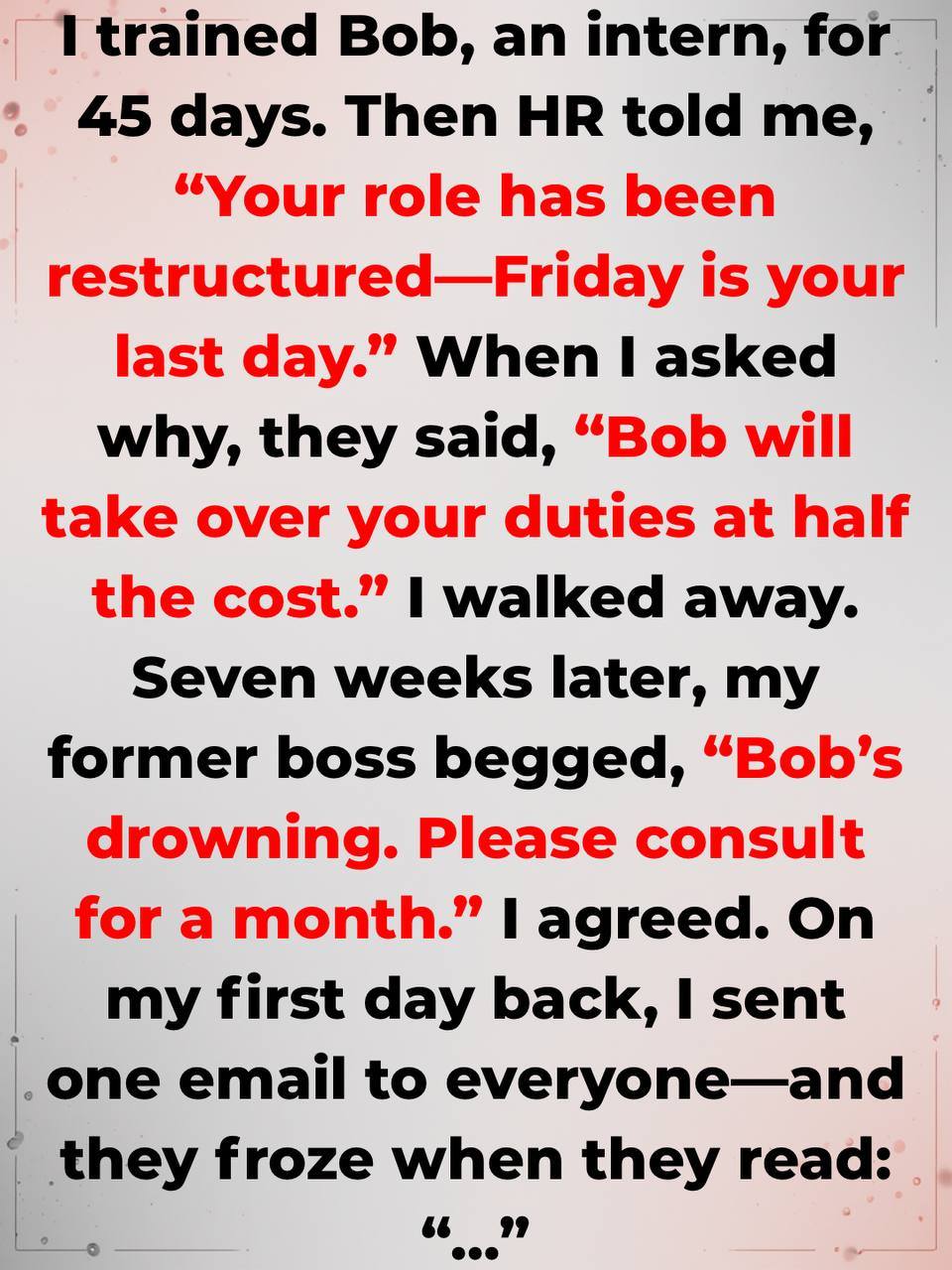 I Was Fired After Training My Replacement, Now My Boss Is Begging Me to Come Back