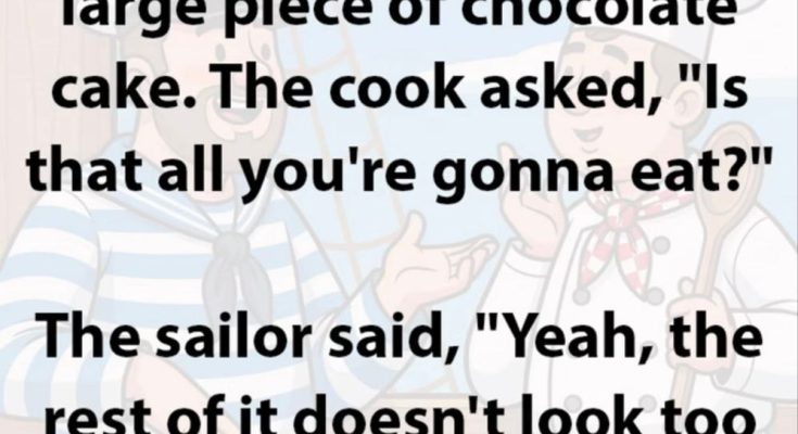 so he just picked up a large piece of chocolate cake. The cook asked, “Is that all you’re gonna eat?”