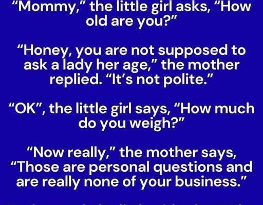 “Honey, you are not supposed to ask a lady her age,” the mother replied. “It’s not polite.”