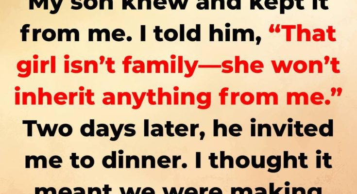 I told my son, “That girl isn’t family. She won’t get my legacy!” He just looked at me, smiled faintly, and said nothing.